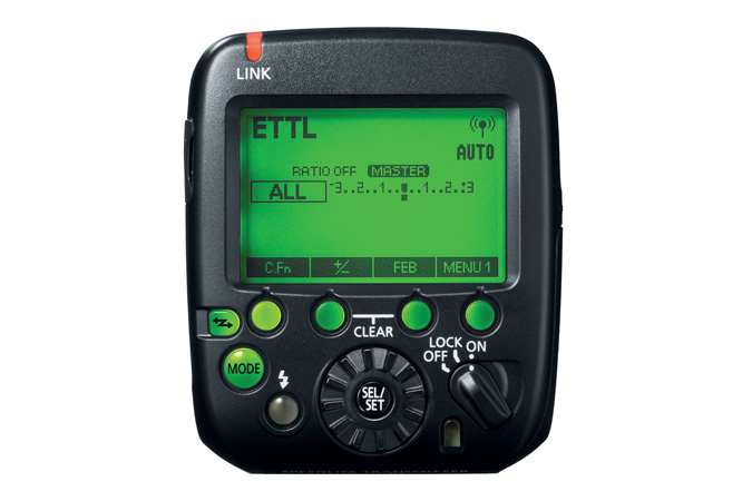 The Speedlite Transmitter ST-E3-RT allows Wireless E-TTL to control up to 15 Speedlite 600EX-RT "slave units", used off-camera up to 98.4 feet (30m) away. They can be triggered from the camera unit itself, or from the new Speedlite Transmitter ST-E3-RT remote. It's also possible to use them the other way around, triggering the Mark III to take a photo from the remote.