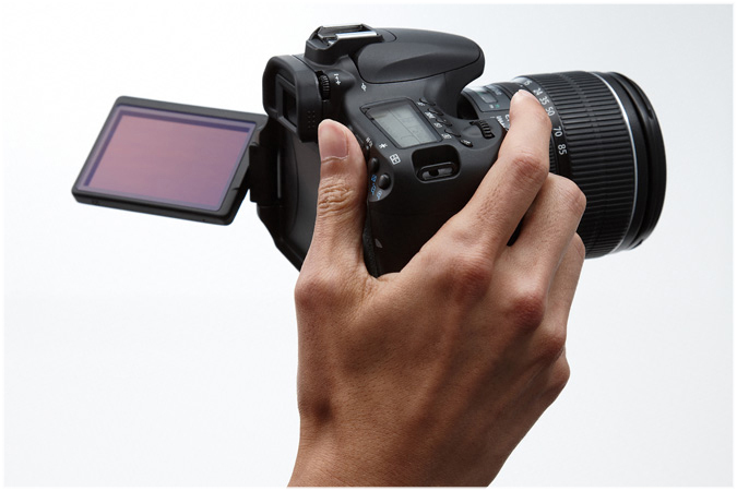 For the first time in the history of the Canon EOS System, the new 60D camera features a large Vari-Angle 3-inch Clear View LCD screen with 1,040,000 dot/VGA resolution plus anti-reflective and smudge-resistant coatings for bright clear viewing from any angle. The new LCD screen is ideal for composing low-angle or overhead shots whether capturing still images or Full HD video clips.