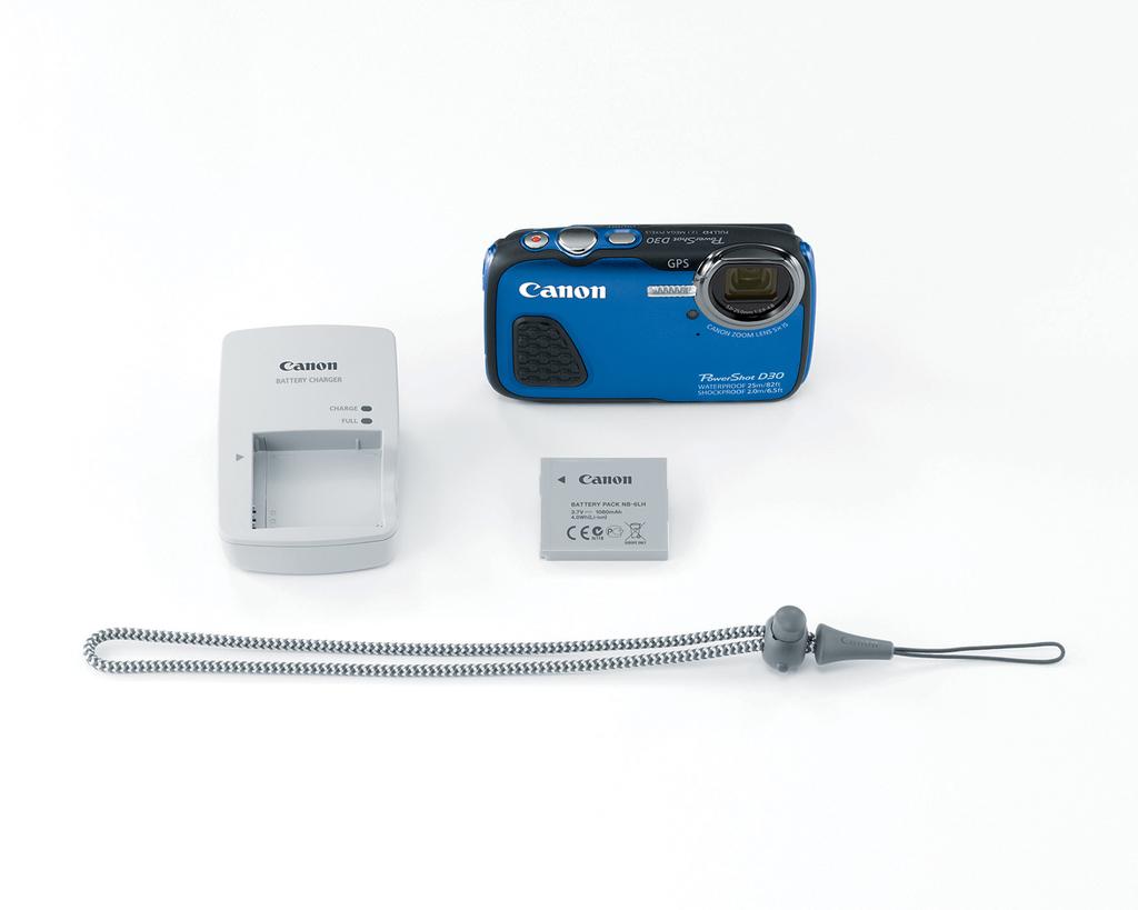 The Canon PowerShot D30 will come in a cool blue color and will launch in April. The waterproof compact digital camera will be priced at $329.99.