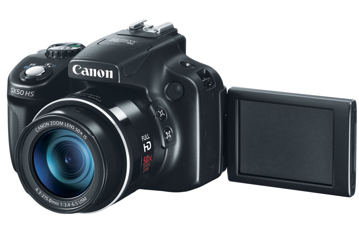The Canon PowerSHot SX50 HS, meanwhile, brings a massive zoom to the party, slotting together a 12.1-megapixel sensor and a whopping 50x optical zoom (24-1200mm) with 24mm wide-angle lens, something Canon claims is an industry first. It unsurprisingly has optical image stabilization, and supports up to ISO 6400 and a 10-shot burst mode at full resolution.