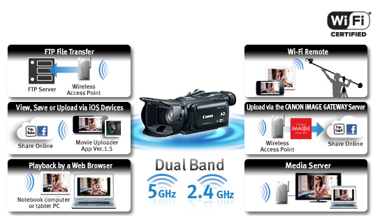 And Wi-fi connectivity allows you to work with Canon's new set of remote controls – you'll be able to control your recordings from a web browser while using your PC, smartphone, or tablet. You'll also be able to use Canon's Movie Uploader app for iOS – easy and free!