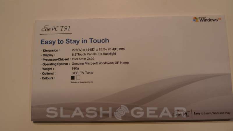 SlashGear has eagerly been waiting to get our hands on the new ASUS Eee PC T91 tablet netbook. This tablet is the first of the Eee netbook line to have an integrated touchscreen designed to give users even more control of their browsing experience.