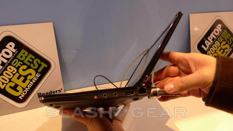 The touchscreen is a 8.9-inch Touch Panel with LED backlighting. Under the hood you will find that it is powered by an Intel Atom Z520 processor. Weighing in at only 990g and 225 x 164 x 25.2 ~ 28.4 mm, this amazing little device is running Genuine Microsoft Windows XP Home.