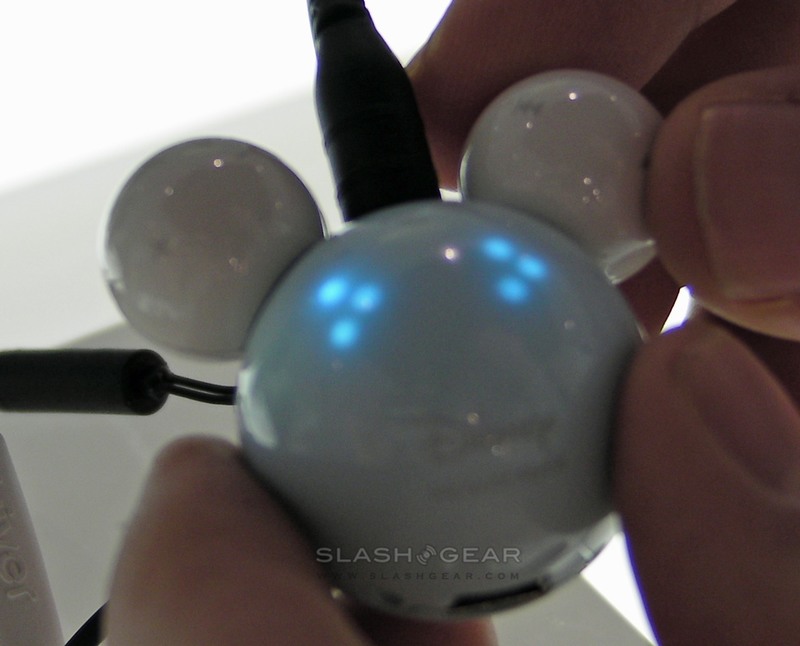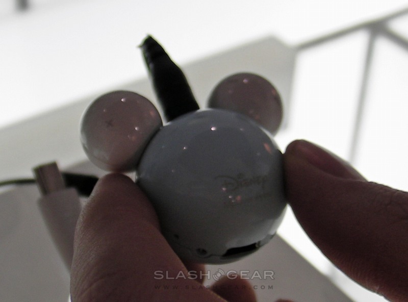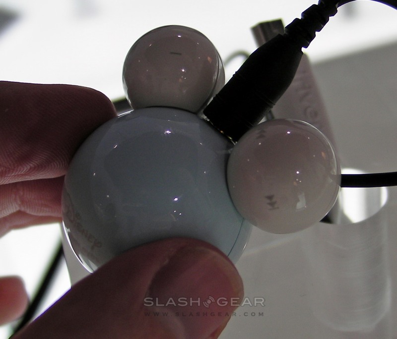 The ears, meanwhile, are the controls. The left adjusts volume, while the right skips tracks; power is controlled via a button on the side. A mini-USB port both recharges the Mickey and is used for file transfers.