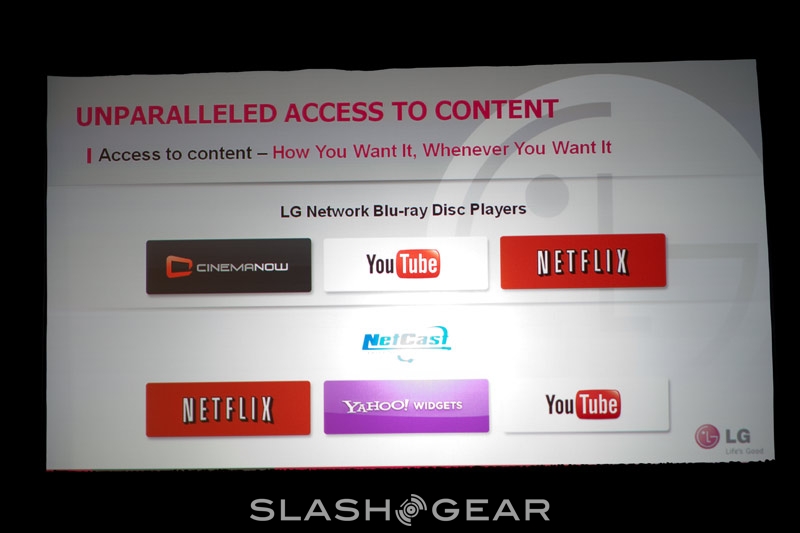 PS80 Full HD 1080p Plasma HDTV with NetCast™ Entertainment Access (Class Sizes: 60- and 50-inch*): LG's first plasma HDTV with Ethernet connectivity allows consumers to access even more content and video on their big screen TV without the need for a computer. This connectivity offers access to Netflix Instant Streaming, Yahoo! Widgets, YouTube and can also access music and photos stored on a home PC – so consumers have a choice when it comes to entertainment. Key features include: