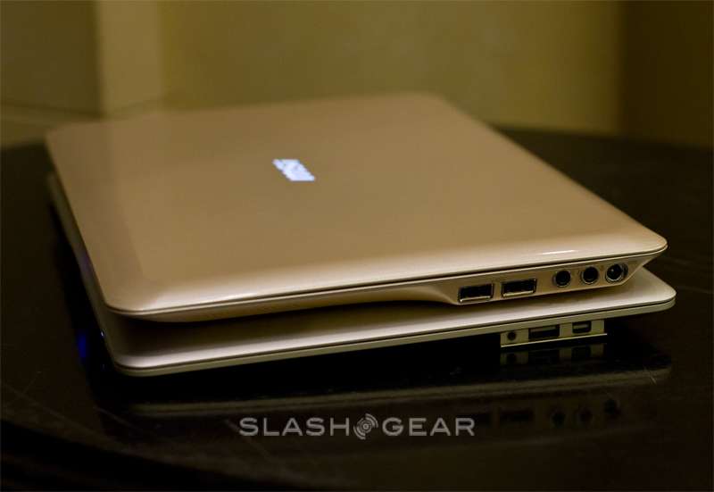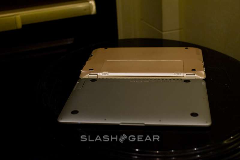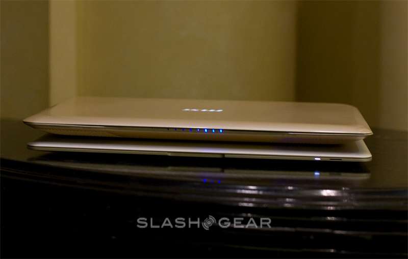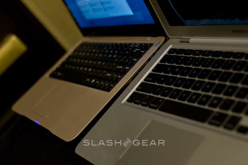 The MSI X-Slim X320 is, as many have observed, surprisingly similar in design to Apple's MacBook Air. Coincidentally, SlashGear brought Apple's second-gen Air to CES today, so we can bring you this exclusive comparison gallery. 1.98cm thick X320 or 1.94cm Air – despite the design overlap there's plenty of difference if you look closely.