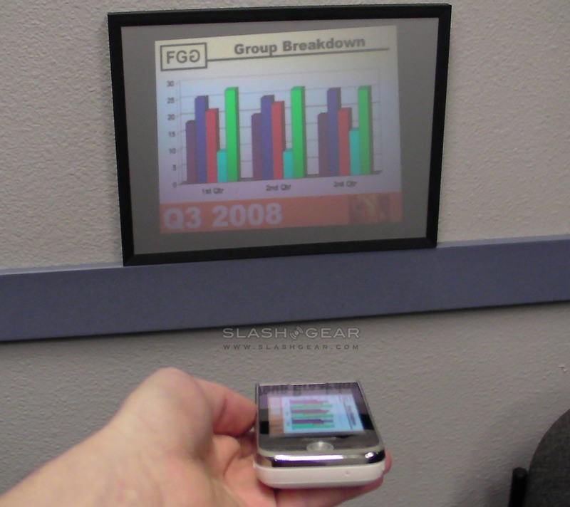 In use, the picture quality is surprisingly good. The demo room was brightly lit, but colors were still relatively rich and, despite the only moderate resolution, showed plenty of detail. While you're unlikely to be watching a two-hour movie, it's certainly a quick and easy way to show a new YouTube clip, impromptu slideshow or TV episode without weighing down your pockets. The MBP200 is seemingly more likely to make it to market in the US and elsewhere outside of South Korea; the Anycall Show less so. However TI tentatively told us that they're working with a number of people to produce pico-enabled devices, so hopefully we'll be able to get our hands on something similar very soon.