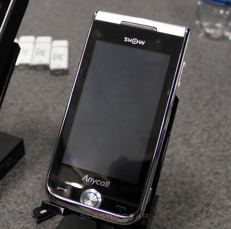 Meanwhile the smartphone, the Anycall Show, takes the same projector technology and integrates it into a touchscreen handset with 3G, GPS and Samsung's TouchWiz GUI. Firing up the projector is as straightforward as choosing "Projector" from the main menu and then selecting a source; that can be either video or still images (where PowerPoint and other Office files are seemingly categorized too). The camera button on the lower right-hand side doubles as a rotation control, flipping the picture to full-screen, and swipe gestures move between slides or pictures.