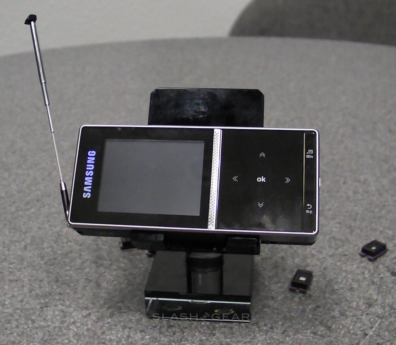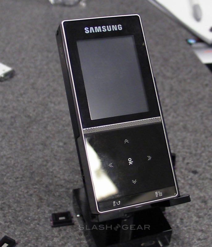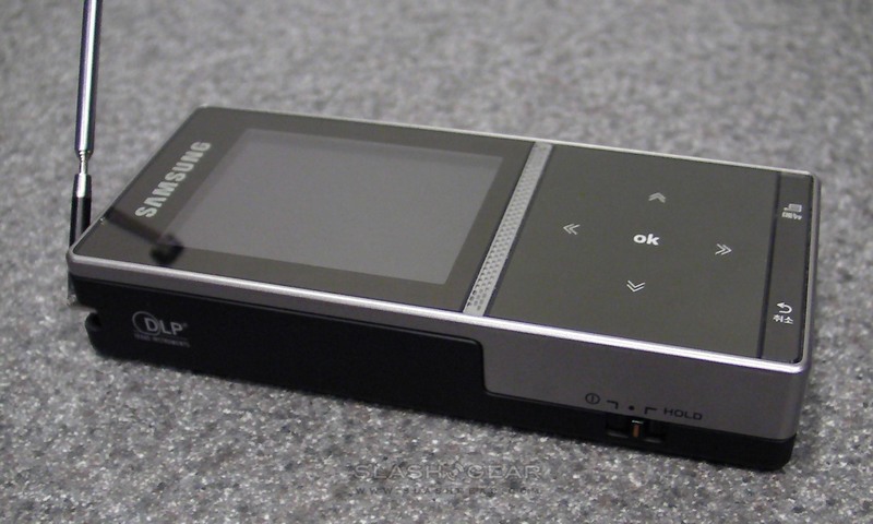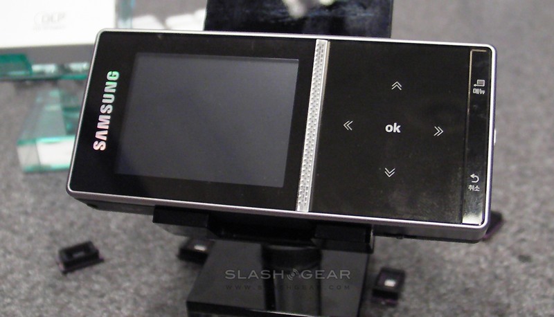 Pico-projection looks to be a burgeoning niche, and inside many of the compact devices lurks Texas Instruments' chipset. SlashGear caught up with the company at CES this week, and took a look at two of the new devices from Samsung using the DLP technology. Unlike existing pico-projectors on the market, Samsung have taken the TI chipset and integrated it into standalone products that don't necessarily require an external video source. In fact their MBP200 PMP and Anycall Show both offer the portable mini-cinema experience all on their own.