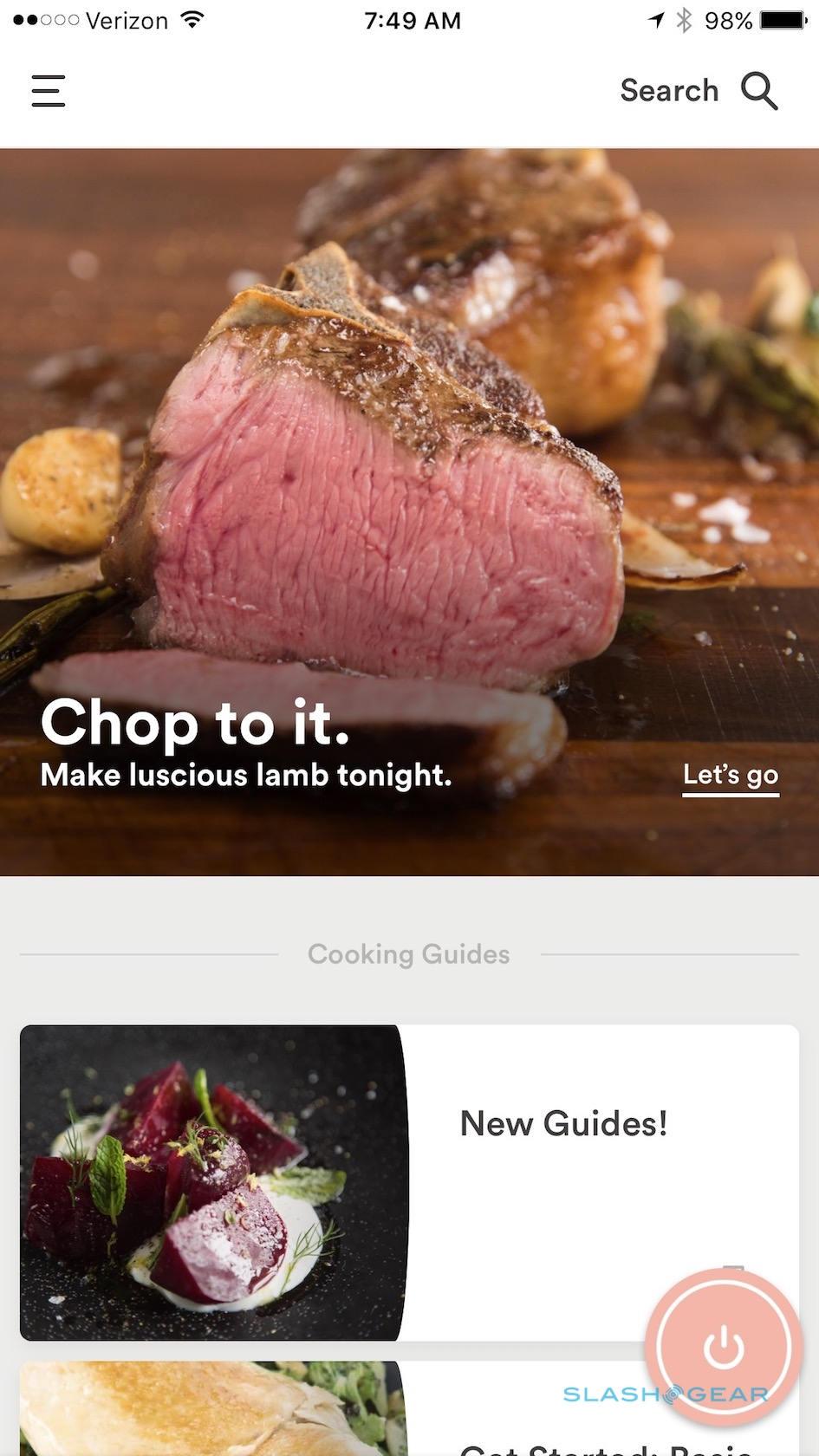 ChefSteps' argument is that it's the app which makes its sous-vide so special. Yes, you can manually set temperatures and timers if you have a recipe or tried-and-true method you prefer, but the company is more proud of its highly flexible guides. Choose a meal – a pork chop, perhaps, or a fistful of asparagus – and it will walk you through preparing it, from readying the ingredients to be bagged, to cooking them in the water bath for the right length of time, to finishing them off with a sear or maybe a reduced sauce.