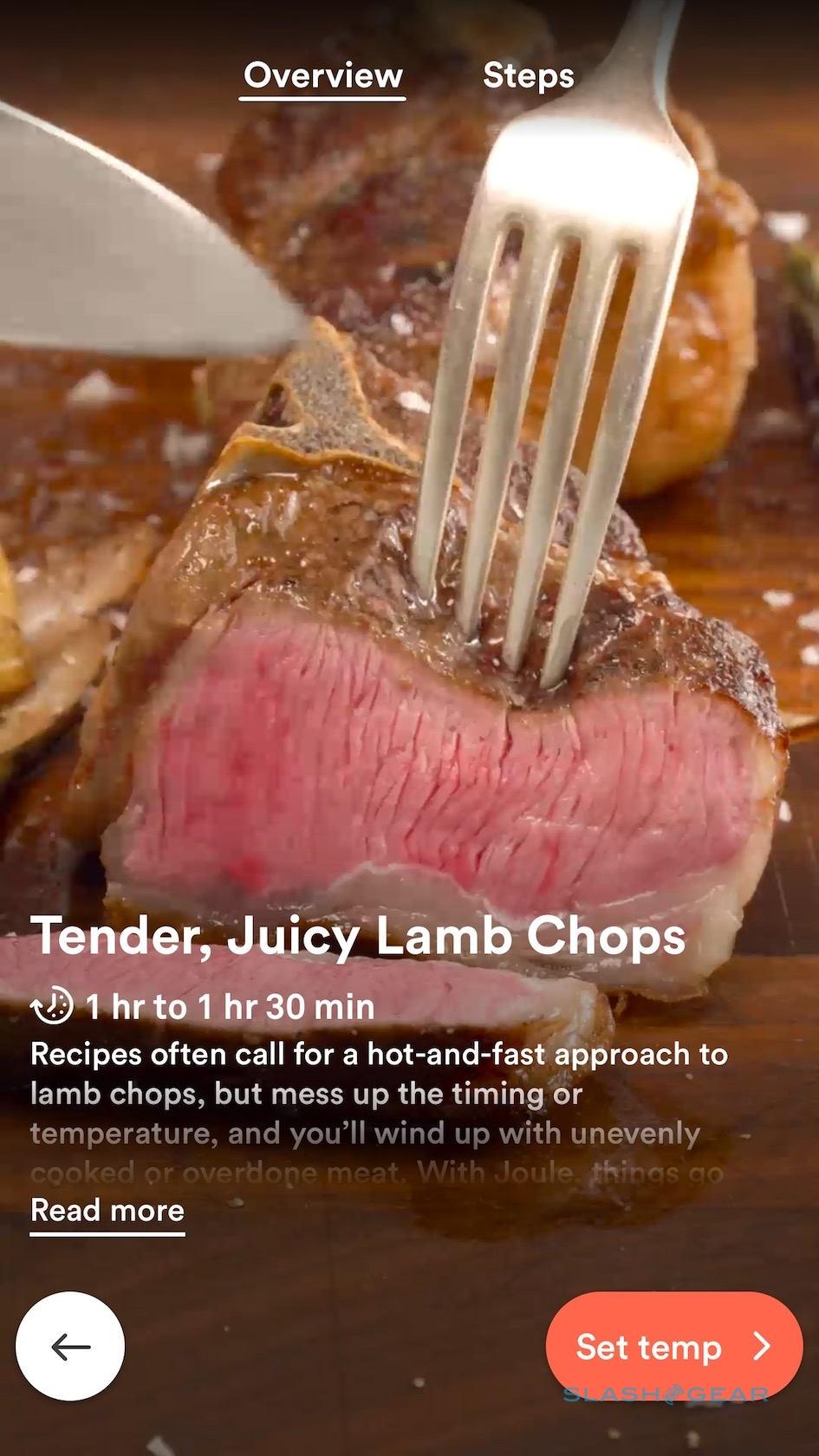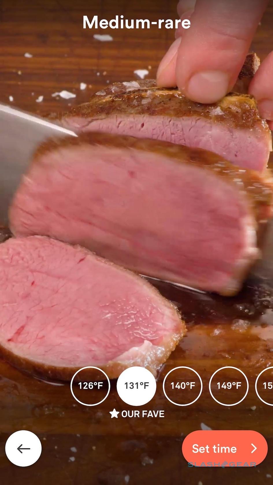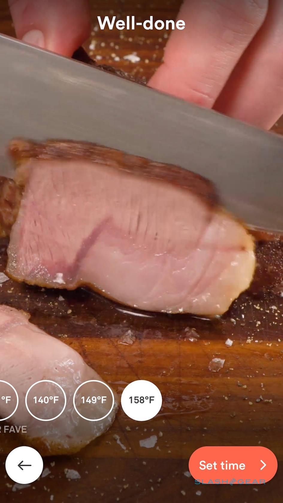 There are plenty of photos and videos to assist with more complex steps, and the Joule app also uses them to help with the most common question around sous-video: what temperature should I use? By showing short clips of the results possible – steaks cooked rare through to well-done, for instance – it's easier to figure out not only what's safe but what's to your personal preferences. At the end of each recipe you can give feedback as to how you liked it yourself.