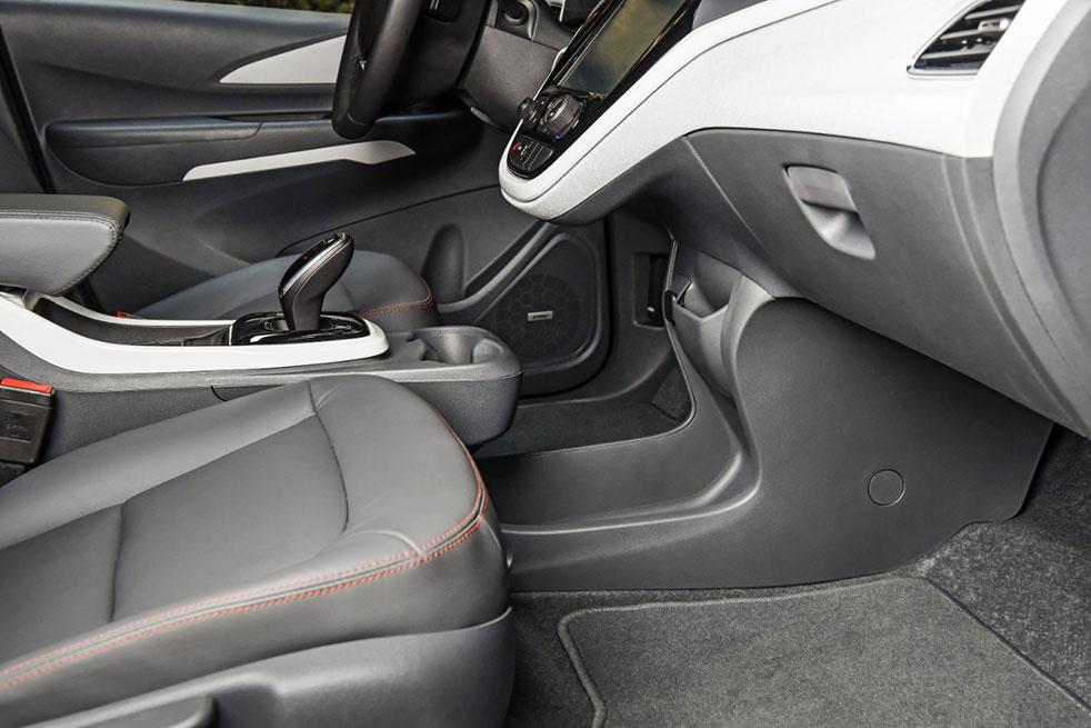 Courtesy of the configurator, which went live this week, we know full spec lists and pricing. The Bolt EV LT has 17-inch painted aluminum wheels, HID headlamps and LED daytime running lamps, ten airbags, a reversing camera, keyless entry and start, single-zone auto climate control, power windows with one-touch open/close, XM radio, dual USB ports, a 60/40 split rear bench, and auto headlamps.