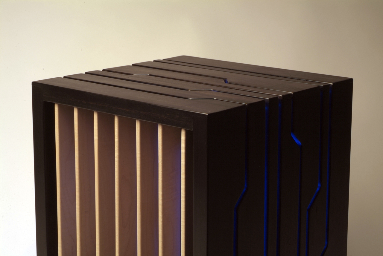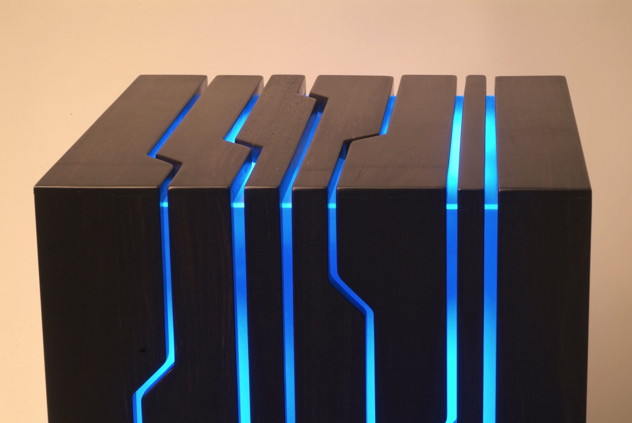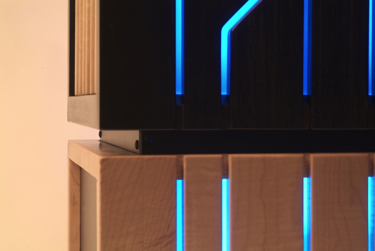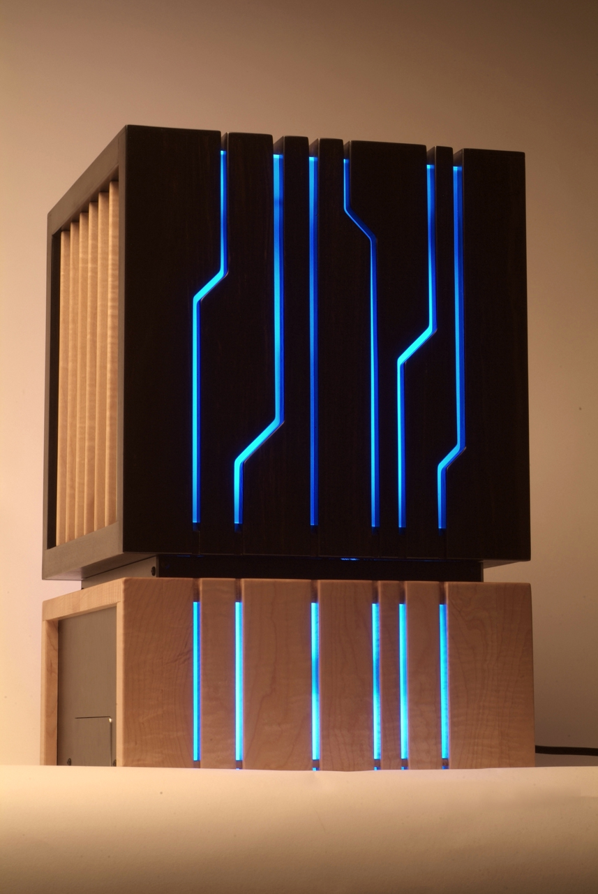 Wood seems to be growing in popularity as a PC case mod material, and it's certainly shown off to its best advantage in the shape of Nick Falzone's Chiaroscuro. Made from ebony and maple, this is less of a case mod and more of a ground-up new build; inspired by the renderings of the Beijing Digital building, it's a beautiful sandwich of wood, black brushed aluminum and UV acrylic.