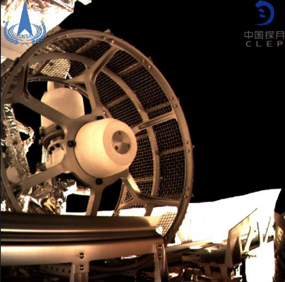 These wheels aren't pneumatic like tires on your car; instead, they are made using a metal frame and mesh rolling surface. The images of the rover are very clear despite being beamed back to Earth via a relay satellite from the moon.