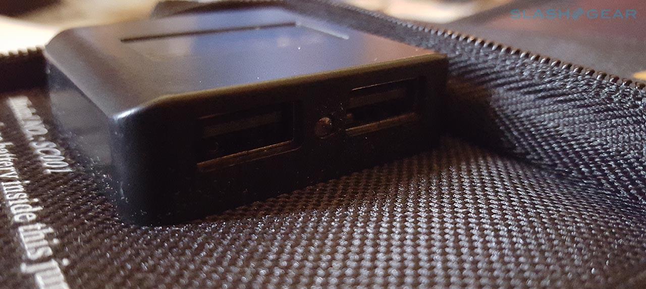 Of course, design is only one aspect of the product. Most consumers are most concerned with whether the solar charger functions as intended, and the answer is yes, yes it does. When exposed to sunlight, a red charging LED indicator will illuminate on the dual-port charging module — if it is flashing, the charger isn't detecting a load and you need to make sure your gadget is plugged in. When solid red, the solar charger is charging.