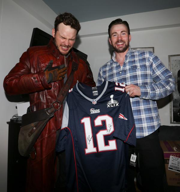 The two actors made plans to visit the nonprofit organization, but it was the Super Bowl that determined who was going costumed. Evans is a Patriots fan, while Pratt was rooting for the Seahawks. As Pratt's team lost, it was up to Evans to decide the costume to be worn.