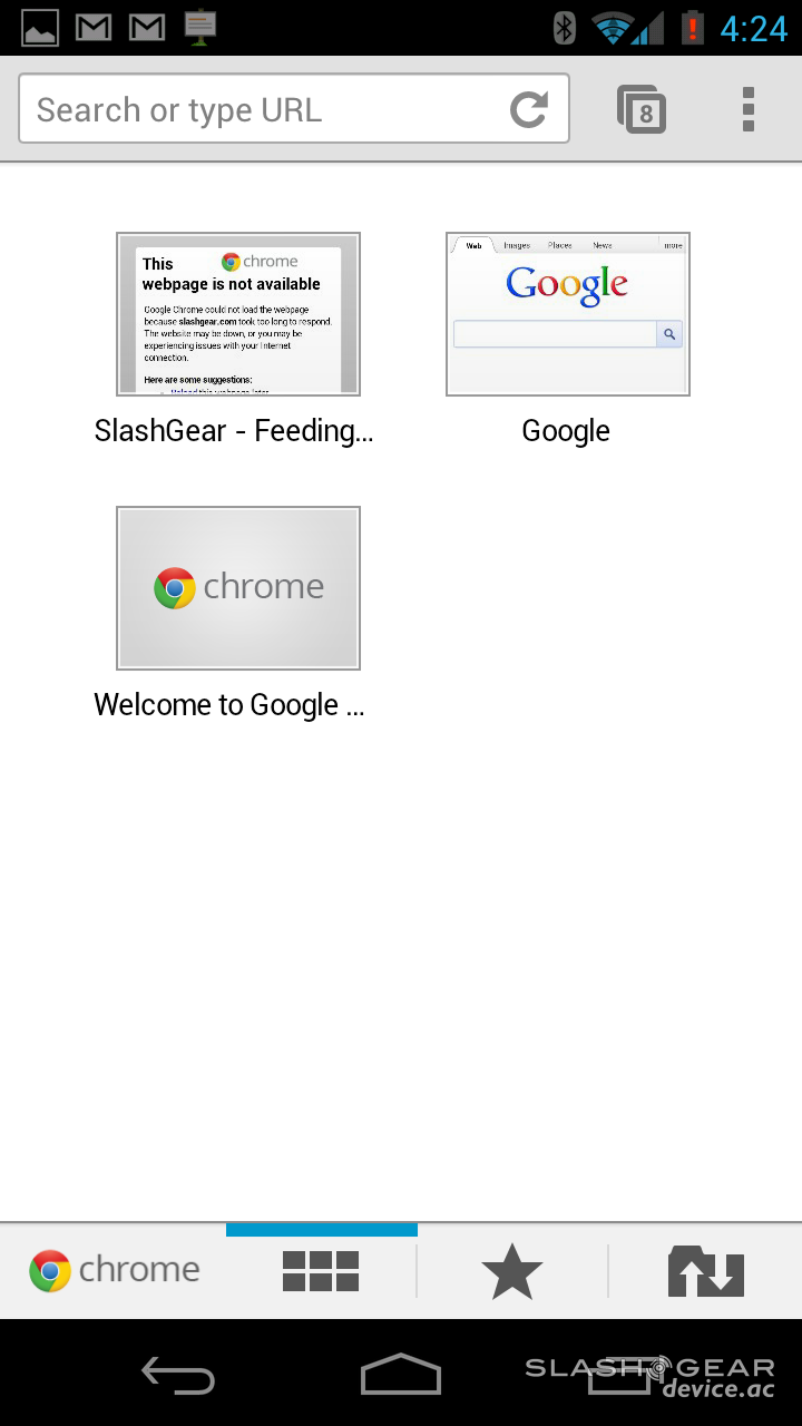 Google has presented its first iteration of the web-centric brand name it uses for both a web browser and an operating system, Chrome, here on Android 4.0 Ice Cream Sandwich. This beta version of the app which now appears mostly to be a web browser is able to work with each other iteration of Chrome you've got open on all devices. It does this with a simple "Devices" interface which shows tabs each browser has open – the rest of the experience is centered around tabs as well, all with the aim of bringing you a speedy and simple internet browsing experience.