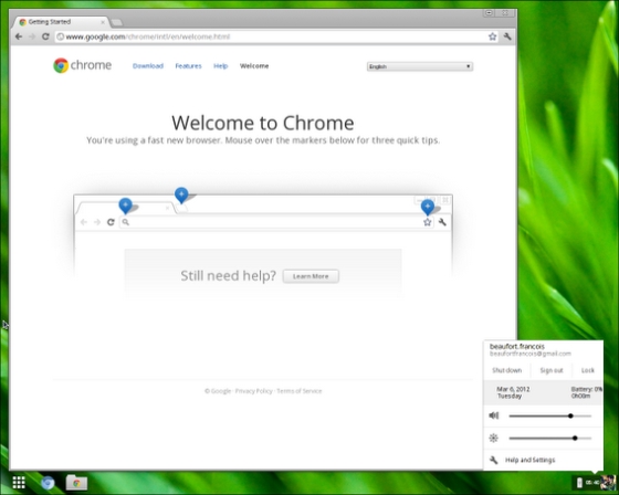 This newest system called Aura Shell has Chromium looking and feeling a lot more like a "traditional" desktop system not all that unlike Windows, Linux, or OS X. This system retains its emphasis on web apps, quick boot speeds, and cloud storage, but adds the benefit of being able to access your work offline. Apps and settings appear on your desktop as well as in your browser tab with this setup, a taskbar and system tray – here called your "uber tray" are also available to have you accessing quick settings at a flash.