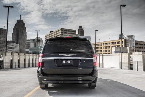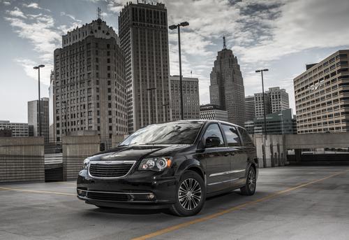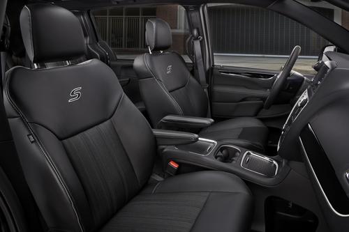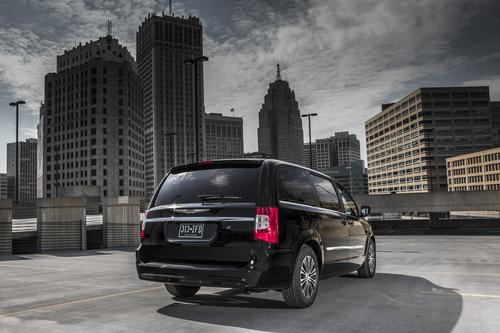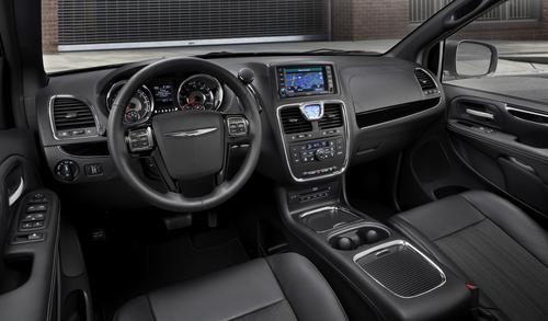 The Town & Country S comes in Brilliant Black, Stone White, Billet Silver, and Deep Cherry Red, and features "revised trim that adds contrast" to the minivan's exterior. There's a black chrome grille, blacked out bezels around the headlights, and 17-inch polished aluminum wheels with pockets painted black. According to the press release, the headlight bezels have delayed availability.