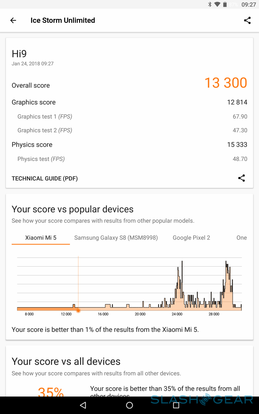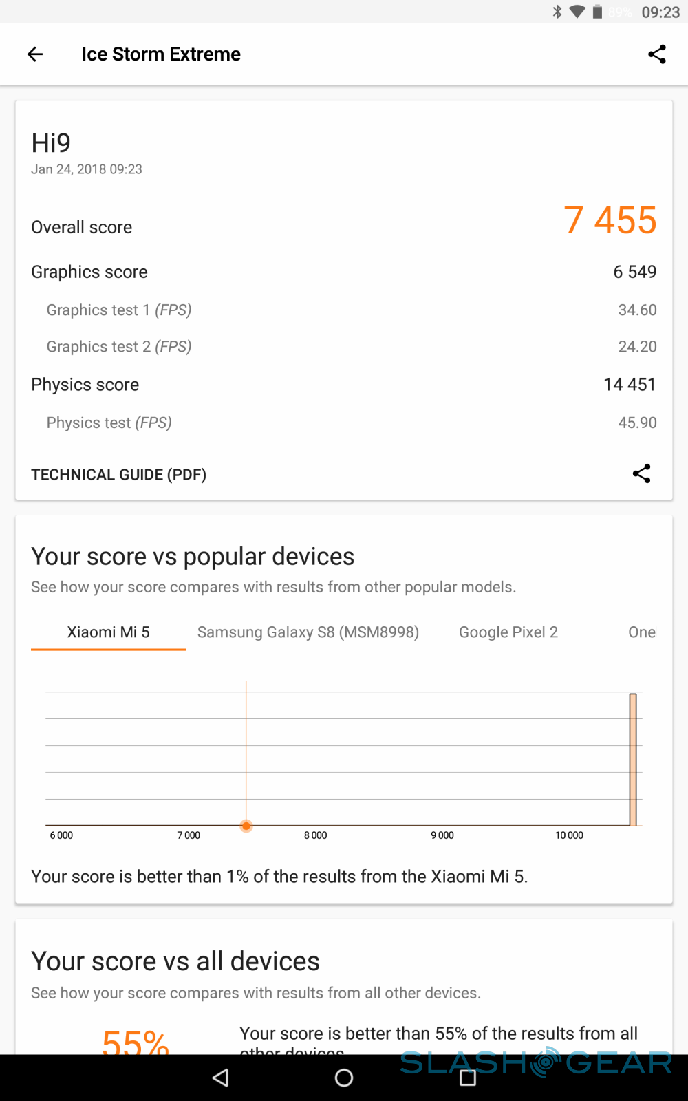 The problem with any benchmark is that they only artificially test a device based on their own criteria. They can never really predict how a device will perform in your hands. For example, the Hi9 did terribly in all of the benchmarks, which can be expected from the device's processor. In actual use, however, the tablet was able to stand on its own pretty well.