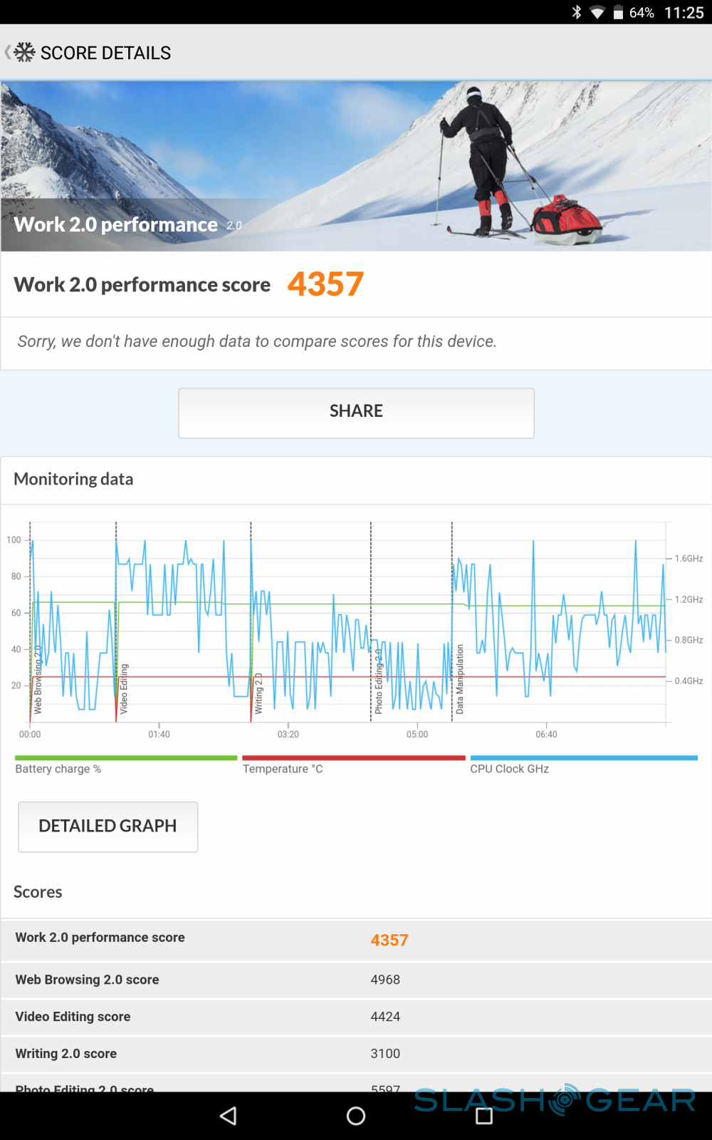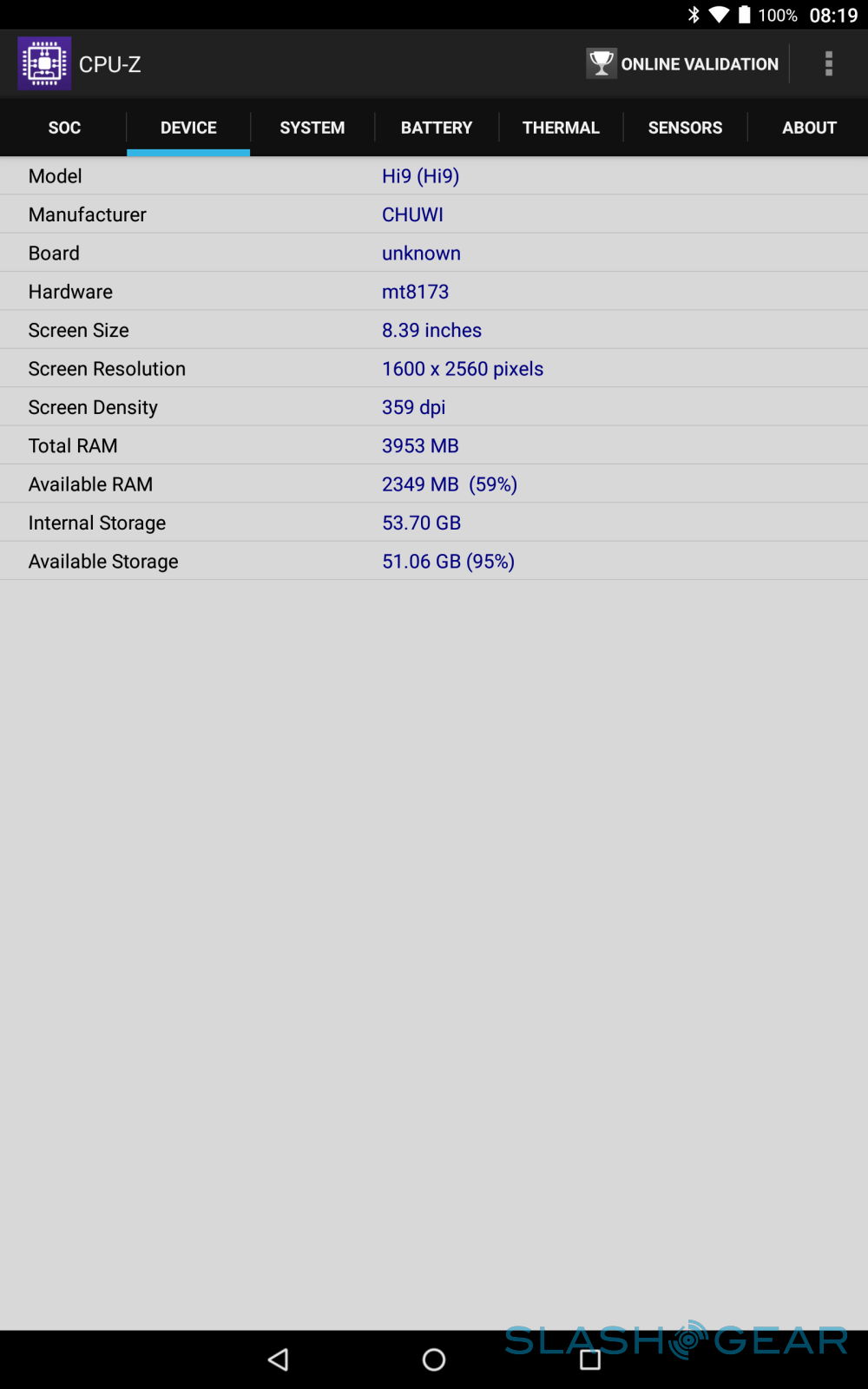 The biggest concern, however, might be the processor. No Qualcomm Snapdragon here. Instead, you have a MediaTek MT8173, an SoC specifically designed for tablets. For the technical details, it uses two high-performance Cortex-A72 cores and two power-efficient Cortex-A53 cores. For graphics, it has an Imagination PowerVR GX6250 GPU. It's obviously not a powerful processor and its limitations easily show under heavy work loads. Fortunately, its average performance is within acceptable ranges. Its biggest flaw is not even its own. Chuwi has opted to use the MT8173 with a 2560x1600 screen, when the processor is advertised to handle up to 1920x1080 only. That mismatch may be to blame for some of the Hi9's performance hiccups.