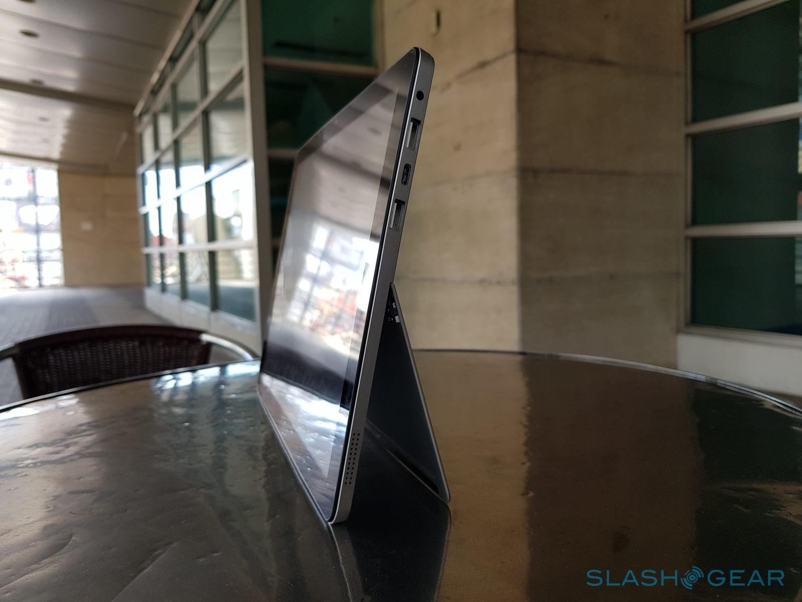 The SurBook is definitely a dead knocker for a Surface Pro, especially the Surface Pro 4. It has nearly the same dimensions as my battle-worn Surface Pro 3 but has thinner bezels and more usable ports. It uses the same hard-edged, tapered design as the Surface Pro 4, which, ironically, Microsoft somewhat dropped in the New Surface Pro, a.k.a. Surface Pro 5. The entire back is made of metal, though probably not the same high-grade, and therefore more expensive, magnesium as Microsoft's originals.