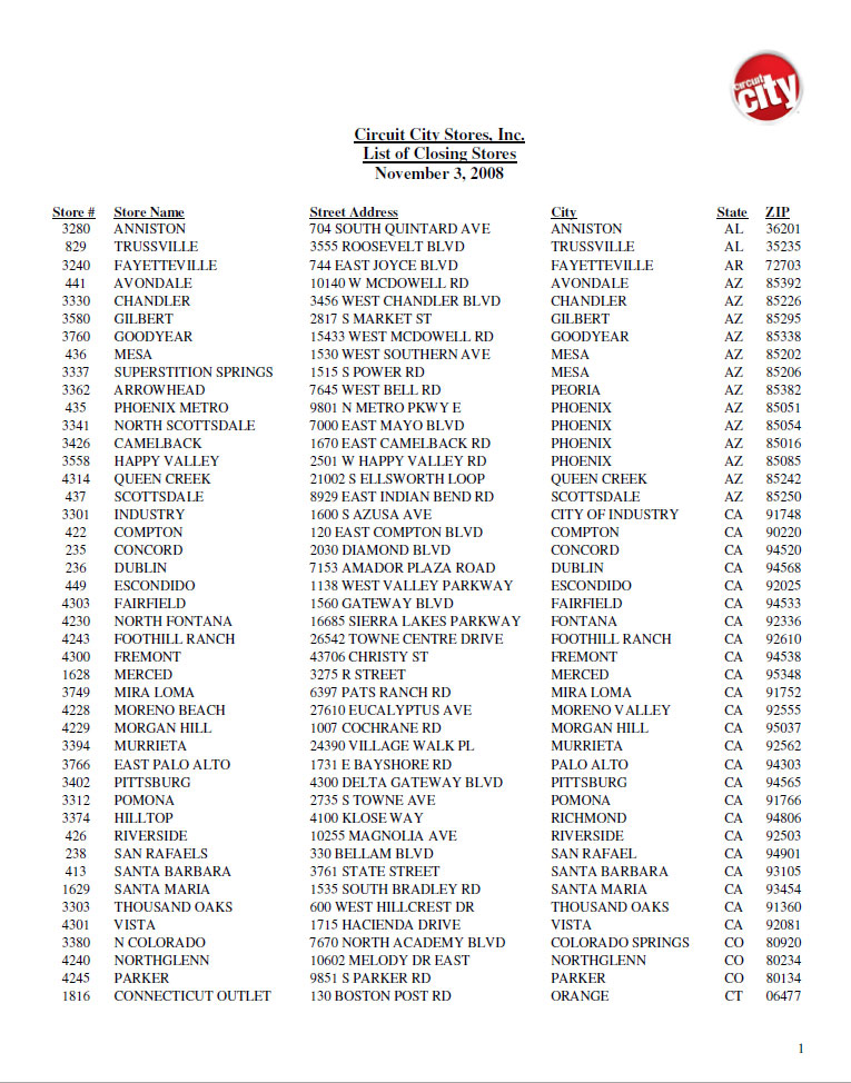 Electronics shoppers in Milwaukee, Antioch and Lenexa (which sounds like a prescription tranquilizer) beware – your Circuit City stores are among the 155 the company has confirmed are closing. While the company has not announced any specific reasons for the closures – which will also mean Circuit City pulling out of twelve markets – it's not hard to see it as an attempt to push its ailing share price back above the $1 mark.