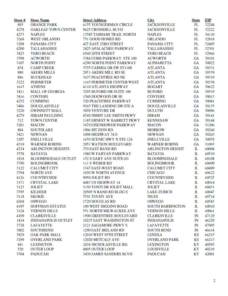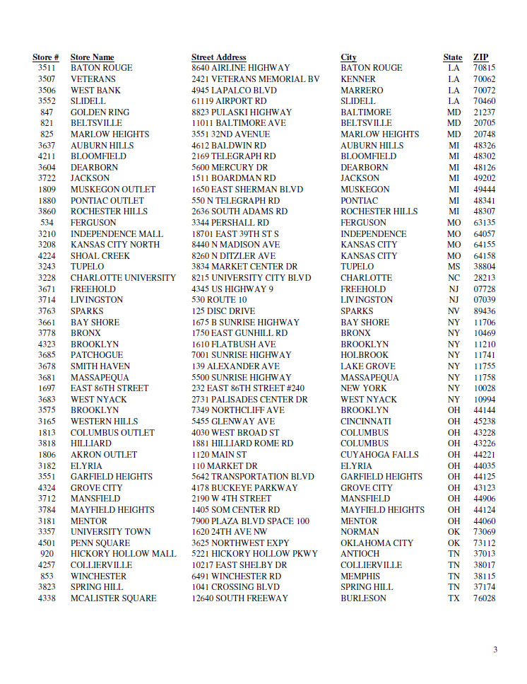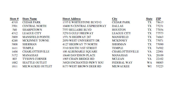 Full list of stores affected after the cut