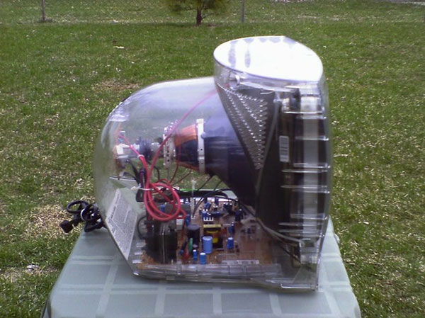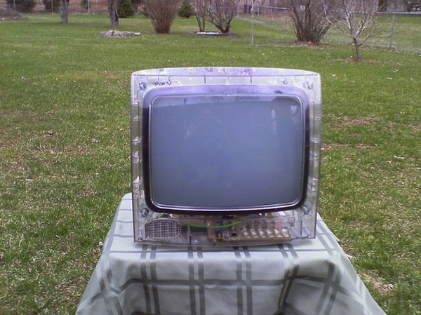 I have never been to jail before much less to prison so all I know about jail comes from TV. I had no idea that prisoners could have TVs in their cells like the one you see in the images below. For a short while back in the mid 80's I remember all sorts of clear items on the market. In fact, I had this old push button telephone in my room that was clear and had brightly colored parts inside that you could see. I though that was the most awesome phone ever.