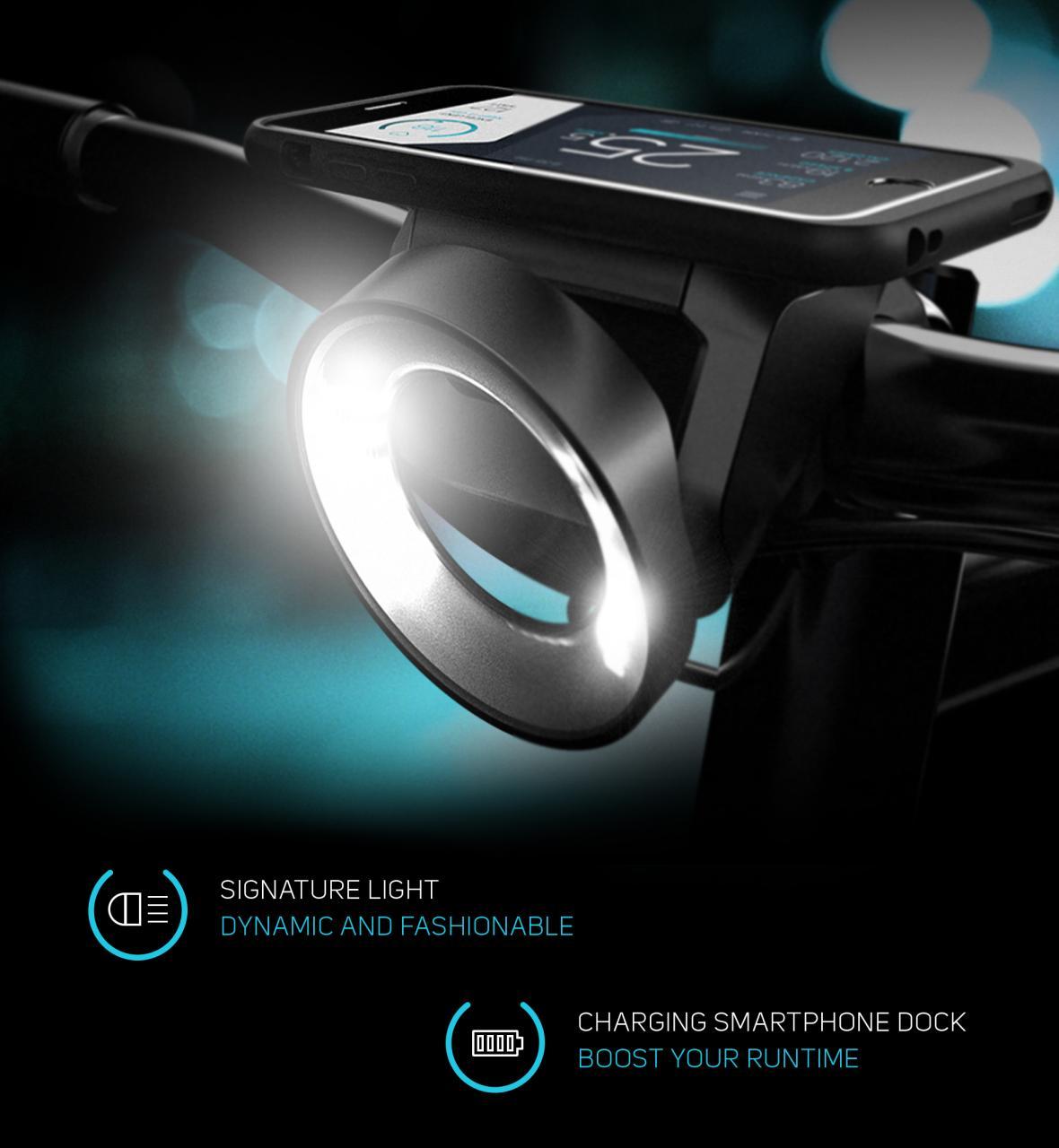 Take for example the Thumb Controller a 5-button LED backlit "D-pad" that can sit on any handle bar 25 to 32 mm in diameter to let you control your smartphone without having to take your hands off the bike handles. No more risky swiping and tapping just to get to the functionality you need. There are also lights available, a signature light in front with different styling options available, and an auto brake light at the back. Tying them all together is the COBI app that is designed to give you the info you need without requiring you to swipe your way through menus and screens.