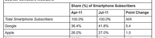 ComScore has issued a new report on the US smartphone market breakdown for the three-month period from April to July 2011. Unsurprisingly, Android and iOS continue their steady climb now reaching a combined market share of nearly 70 percent, while RIM, Microsoft, and Nokia's Symbian continue to slide.