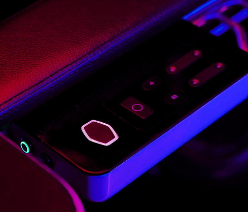The Cooler Master Orb X GamePod is mechanical – it's not just sitting there, un-moving like some so-called all-inclusive gaming chairs of the past. This one has a "shuttle dome" that holds the display or displays. This dome lowers down in front of the user with "a single touch."