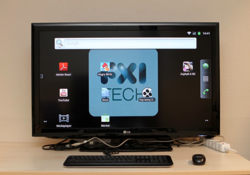 Bluetooth is used for peripheral support while the dongle is plugged into a TV, and your smartphone can hook up wirelessly to act as a mouse or keyboard. When hooked up to a Windows, Mac or Linux computer, meanwhile, Cotton Candy can borrow their peripherals and present its own UI either full-screen or windowed. MPEG4 and H.264 video decoding is supported, at HD resolution, and there's a special cloud interface to get you logged into your services.