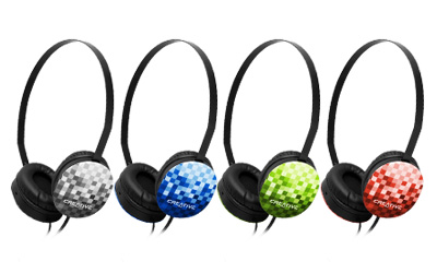 All of the colors have the same checkerboard design on the ear cups in black, blue, green, and red colors. The headphones are aimed at mobile users with media players like the Zen line. The adjustable headband is made from a black alloy metal and can be worn over a hat or sunglasses. The units have 30mm slim drivers with Neodymium magnets and copper-clad aluminum wires. A 3.5mm plug means the headphones will work with almost all mobile devices. The headphones will ship at the end of September for S$49.