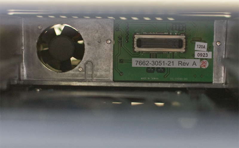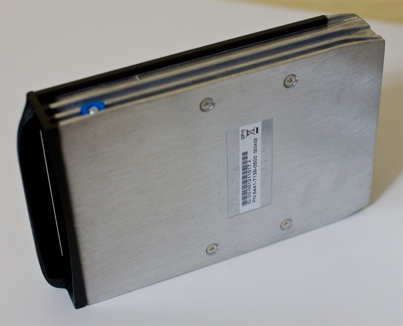 Four LED lights indicate power and drive activity, as you'd get on a normal caddy, as well as a red "error" LED and a green "encryption enabled" LED. There's also a temperature sensor, which works from an adhesive strip applied to the drive as you load it into the caddy for the first time, which will control the speed of the fan. The caddy itself has a fan-failure alarm.