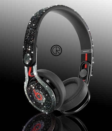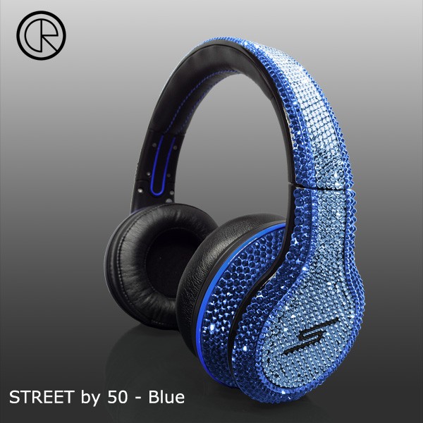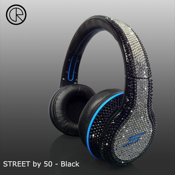 There's not a whole lot of devices out there at this point that the group known as Crystal Rocked have not bumped up an ultimate over-the-top level of glitz, and both Beats by Dre and Street by 50 have been caught on the radar and pushed through the crystal machine by the masters. What you'll get with the Beats by Dre set of audio blasters is the "Mixr" model tricked out in 2750 individual Swarovski Crystals. What you'll get with the Street by 50 headphones is two shades of Swarovski Crystals which they've declined to number.