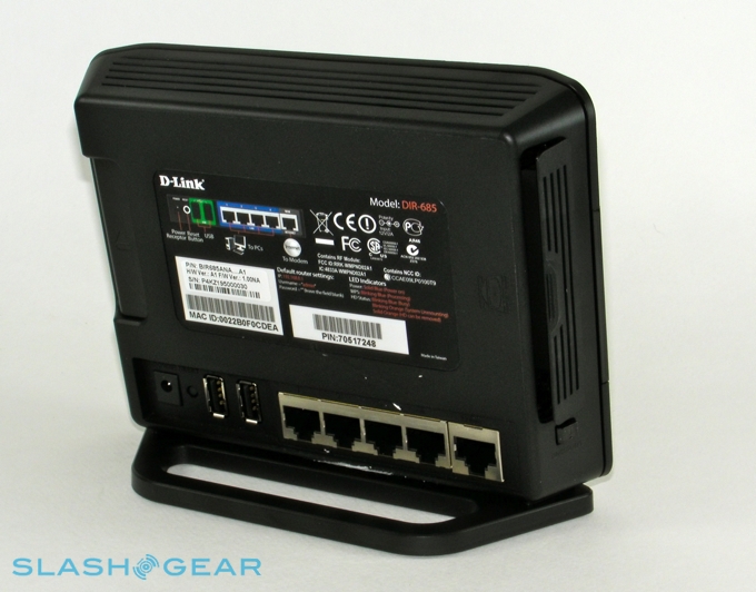 Of course, in the end this is a wireless router, and so has to be judged primarily on that instead of just its whiz-bang feature set. The good news is the WiFi b/g/n support and gigabit Ethernet ports; the bad news is that there's neither WiFi A nor 5GHz on offer. The absence of the former is unlikely to affect most home users, but leaving out 5GHz support seems a clueless decision for a flagship router. In a nutshell, the DIR-685 uses the 2.4GHz frequency band (as do various intercoms, short-range radios and other wireless gadgets); high-end rival routers offer the 5GHz, as an either/or or a dual-radio setting, which allows you to switch high-priority traffic (such as streaming HD video or VoIP) to the more stable higher frequency.