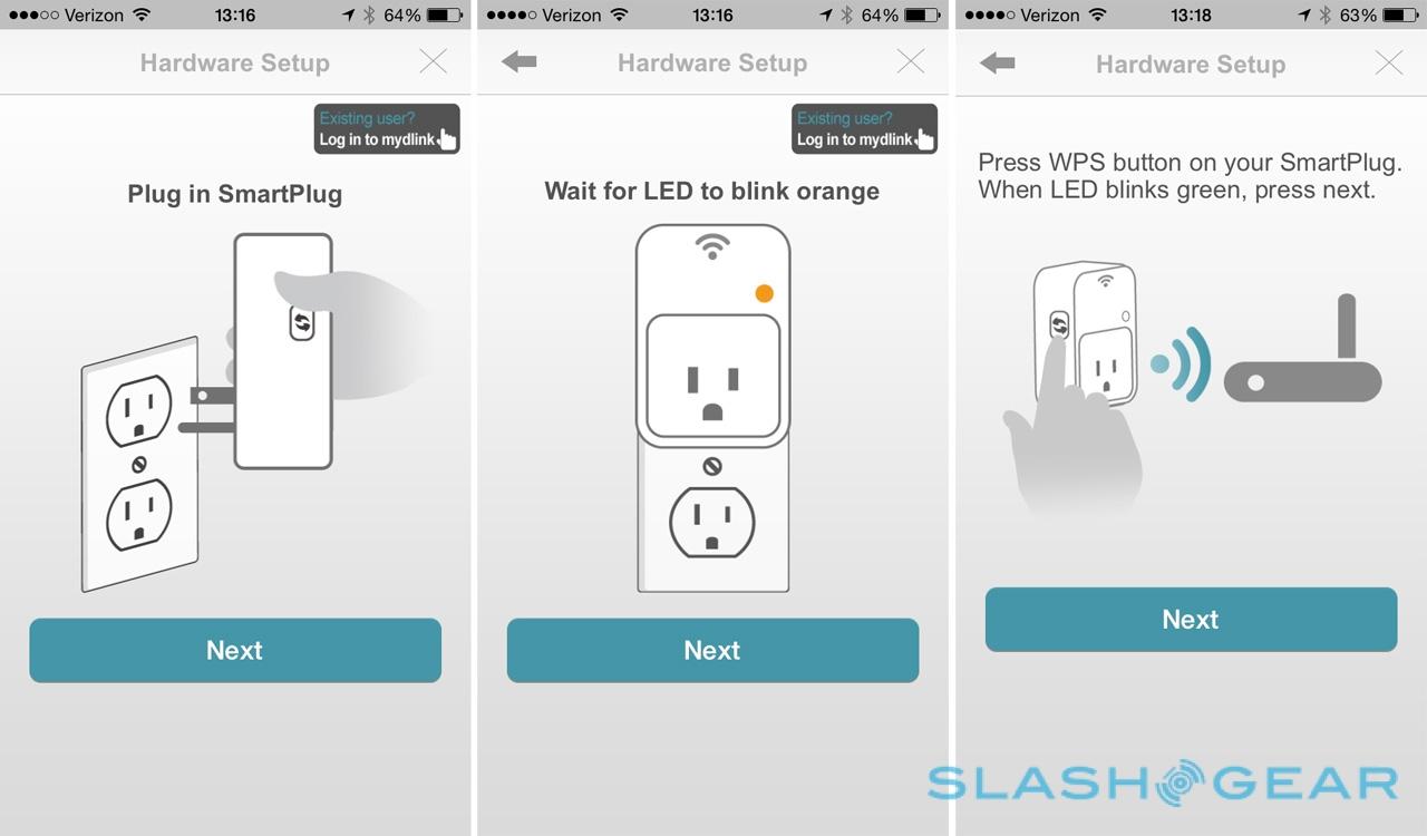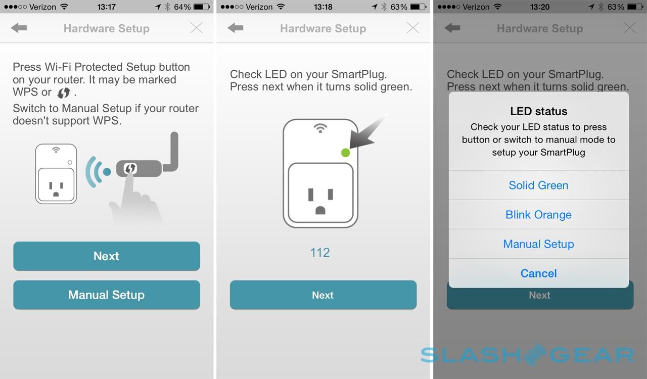 Setup promises to be simple, though the reality was somewhat more complex. In theory, you plug in the Smart Plug with your choice of appliance, install the mydlink app Smart Plug app, wait for the flashing light to start blinking green, and then hit the WPS button on your router and the plug and wait for them to harmoniously synchronize.