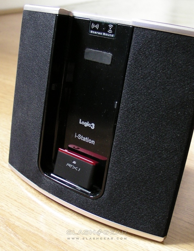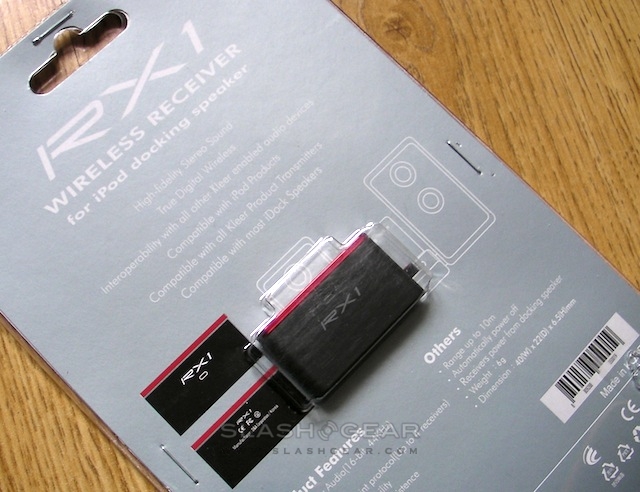 So far all the Kleer receivers we've tried have been integrated with headphone systems, whether modular (but using proprietary plugs) as with Sleek Audio, or built into headphones as with Digital Opera. D&A's RX1, meanwhile, is intended to plug into an iPod audio dock, streaming music from your iPod over to the speaker system.