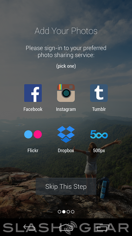 When you first download Dayframe and open it up, you're greeted by the screen you're seeing at the head of this article. You can connect to more photo galleries than those associated with Facebook, Instagram, Tumblr, Flickr, Dropbox, and 500px, but these are quite likely the systems that'll be most utilized by the public. We've opted to connect to our friends on Tumblr for starters.