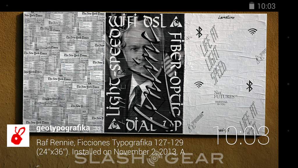 Photos appear across the entirety of your display – unfortunately it would appear that the app isn't quite ready for Android 4.4 KitKat as we're still getting a bit of a bar here with the Nexus 5. This fix will be in likely in time for the final release of the app.