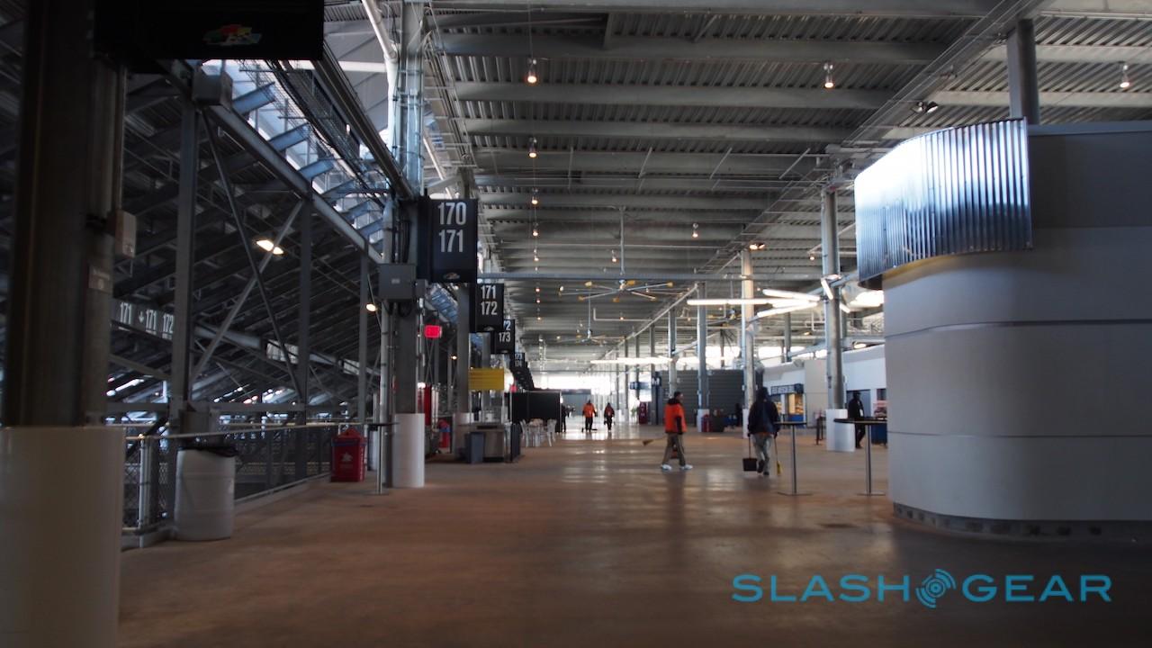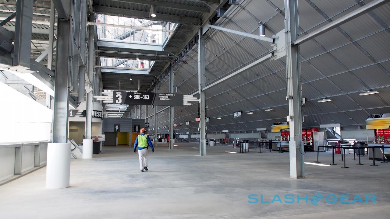 Even the top concourse, the narrowest of the new spaces, is a capacious 35 feet wide. By the time you get to level one, the sheer amount of room is hilariously vast; things will undoubtedly look a little different when enough fans to fill all hundred-thousand seats are present, rather than the few slightly lost-looking visitors wandering through while I toured the new space during the Friday practice sessions.