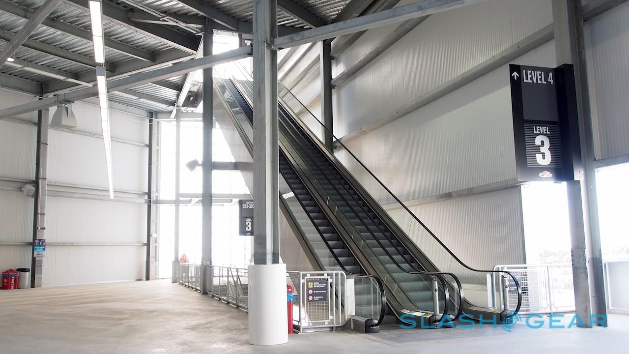 Escalators change all that, and they're kind of a big deal in NASCAR terms. Local news crews paid the Speedway a visit the first day they were turned on, in fact.