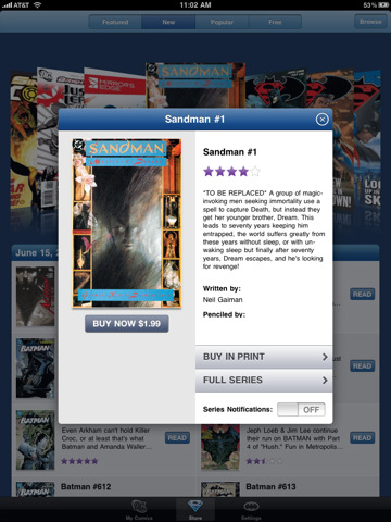 Those are acquired via in-app purchasing, with titles ranging from around $1.99 for an individual issue to $2.99 for bigger comics. They can be read either in full-page view, or using a simple tap-through guided reading system that moves you from pane to pane in the correct order.