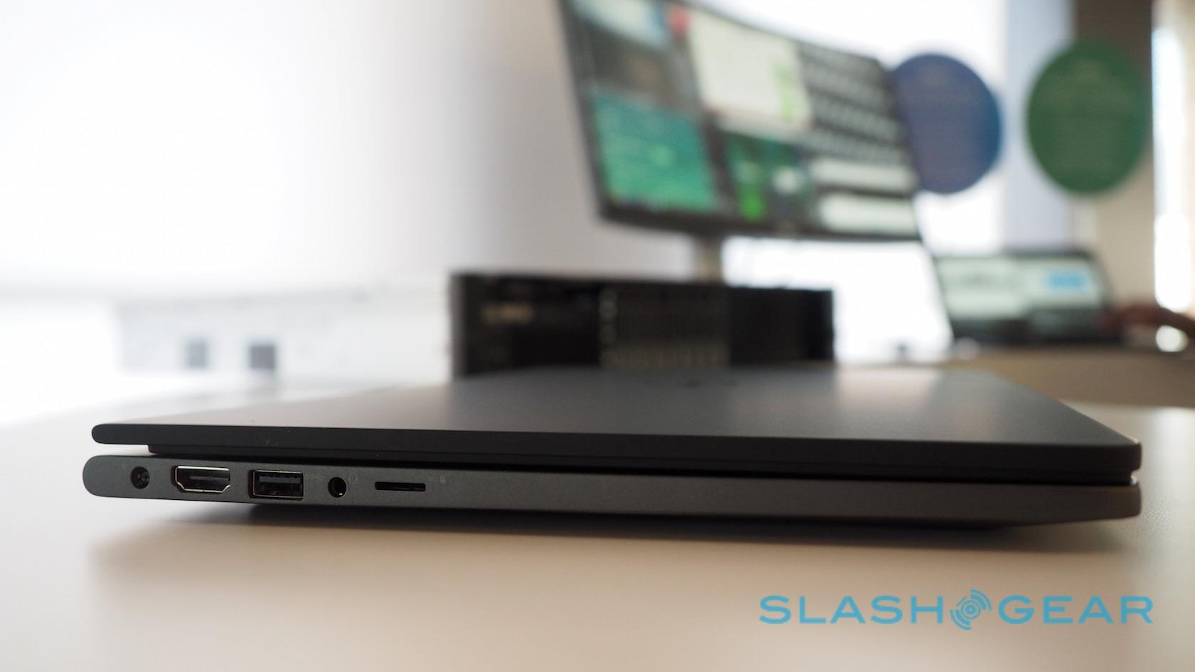 Like Dell's Windows-based notebooks, that gets a slick carbon fiber cover wrapped around an aluminum and magnesium body. It's 0.27-inches thick, weighs 3.23 pounds for the 13.3-inch Full HD IPS model, and 3.53 pounds for the touchscreen model with Gorilla Glass.