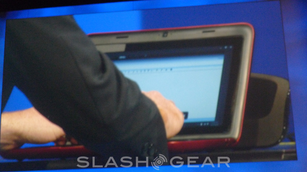 Dell also showed a docking station which could be used to add amplified speakers to the DUO when in slate orientation. According to Dell, the Inspiron tablet will be available later on in 2010.