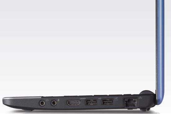 There's also WiFi – in either b/g or a/g/n flavors – together with Bluetooth, plus a standard 1.3-megapixel webcam, 10/100 ethernet and an HDMI port. Other ports include a 3-in-1 memory card reader, three USB 2.0 (one of which is powered) and audio in/out.