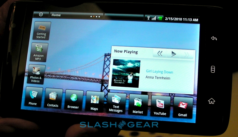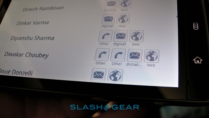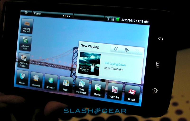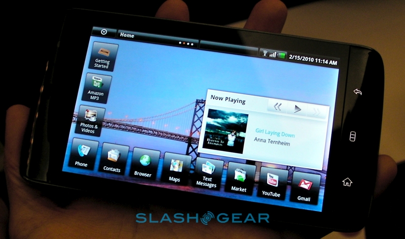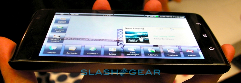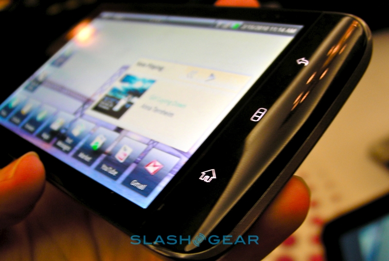 The 1GHz Snapdragon chipset kept things moving swiftly, and there are all the usual Google apps including Gmail and the webkit-based browser. The modem connection has quadband GSM and then will be offered in various SKUs suited for European, AT&T or T-Mobile AWS 3G. Still no specific release date or pricing as yet.