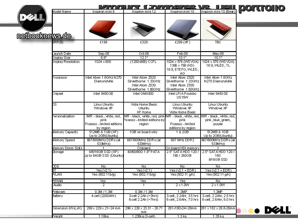 There's nothing we like more than a glimpse into a company's product roadmap, and someone leaky at Dell has delivered with news of their upcoming netbooks for 2009. The presentation confirms both the next evolution of the existing Dell Inspiron Mini 10, together with the new 11.6-inch Dell Inspiron Mini 11 which should surface between now and the end of September.