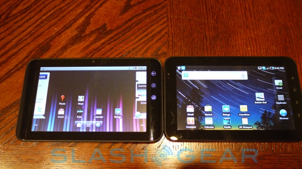 There are two speakers on the Streak 7 on both ends of the device, which gives it a true stereo experience with applications that use audio. In comparison the Tab has two speakers but they are both at the bottom of the device.